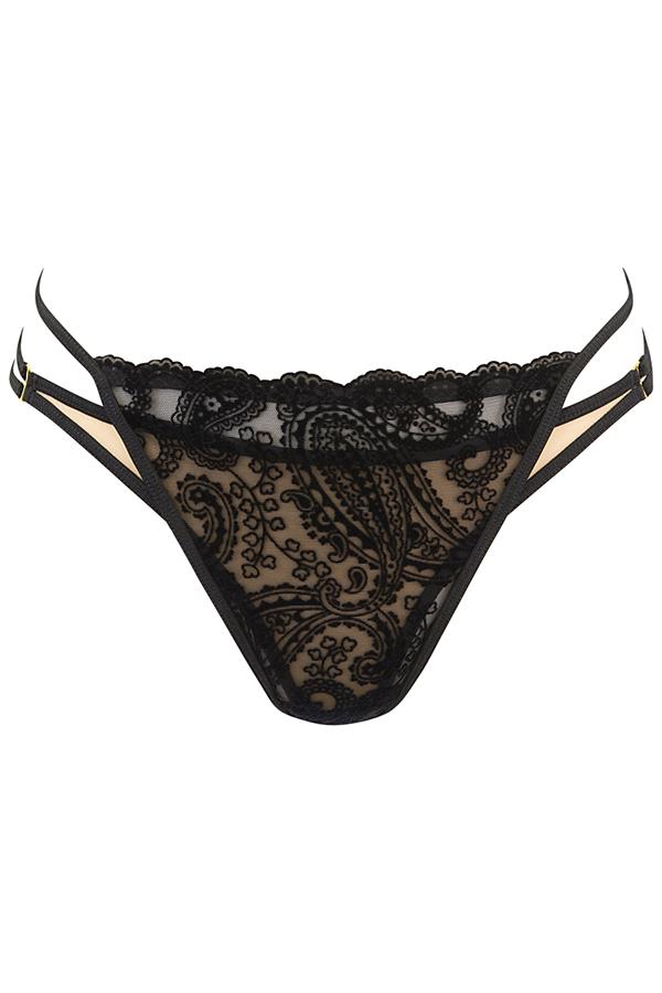 Super sexy en verleidelijke string die uit 2 strings bestaat. Een nude kleurige string zit onder een zwarte kanten string. Deze string heeft ook 3 heupbandjes.