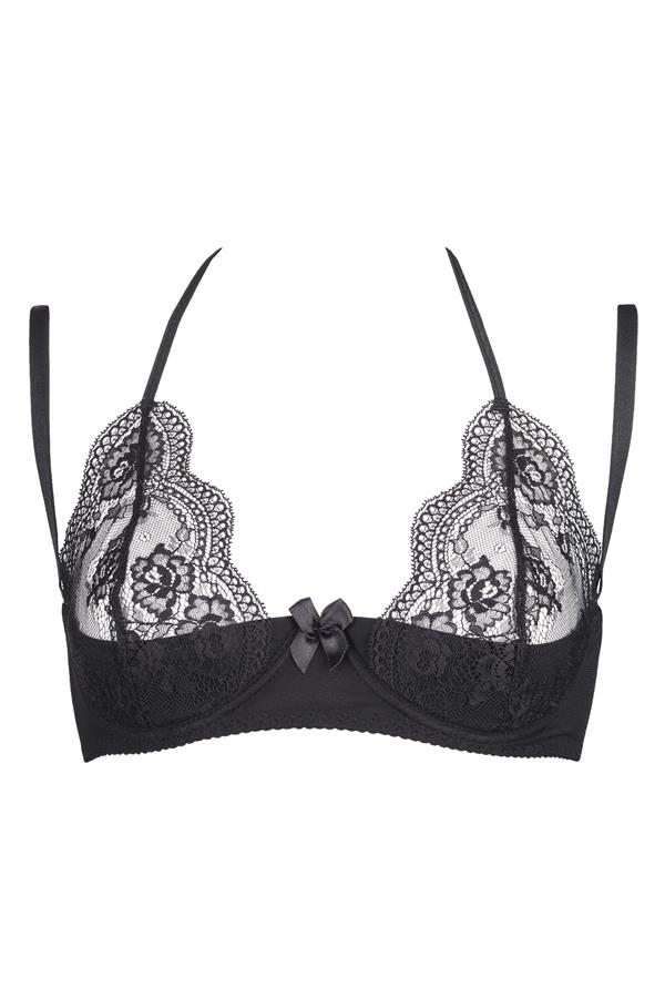 Deze BH combineert een verleidelijk doorzichtig kanten haltercup met een stevige ondersteunende padding. Precies wat grote borsten nodig hebben! Subtiel kant maar met een stevige ondersteuning.