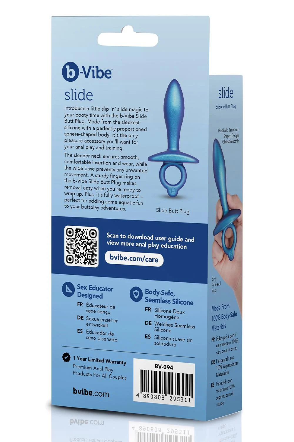 Zacht, slank en onweerstaanbaar comfortabel – de b-Vibe Slide Silicone Plug is dé ideale keuze voor wie op een veilige en prettige manier wil experimenteren met anale stimulatie. Met z’n gladde, druppelvormige design glijdt hij moeiteloos naar binnen voor een gecontroleerde, opbouwende sensatie die je lijf laat verlangen naar meer.
