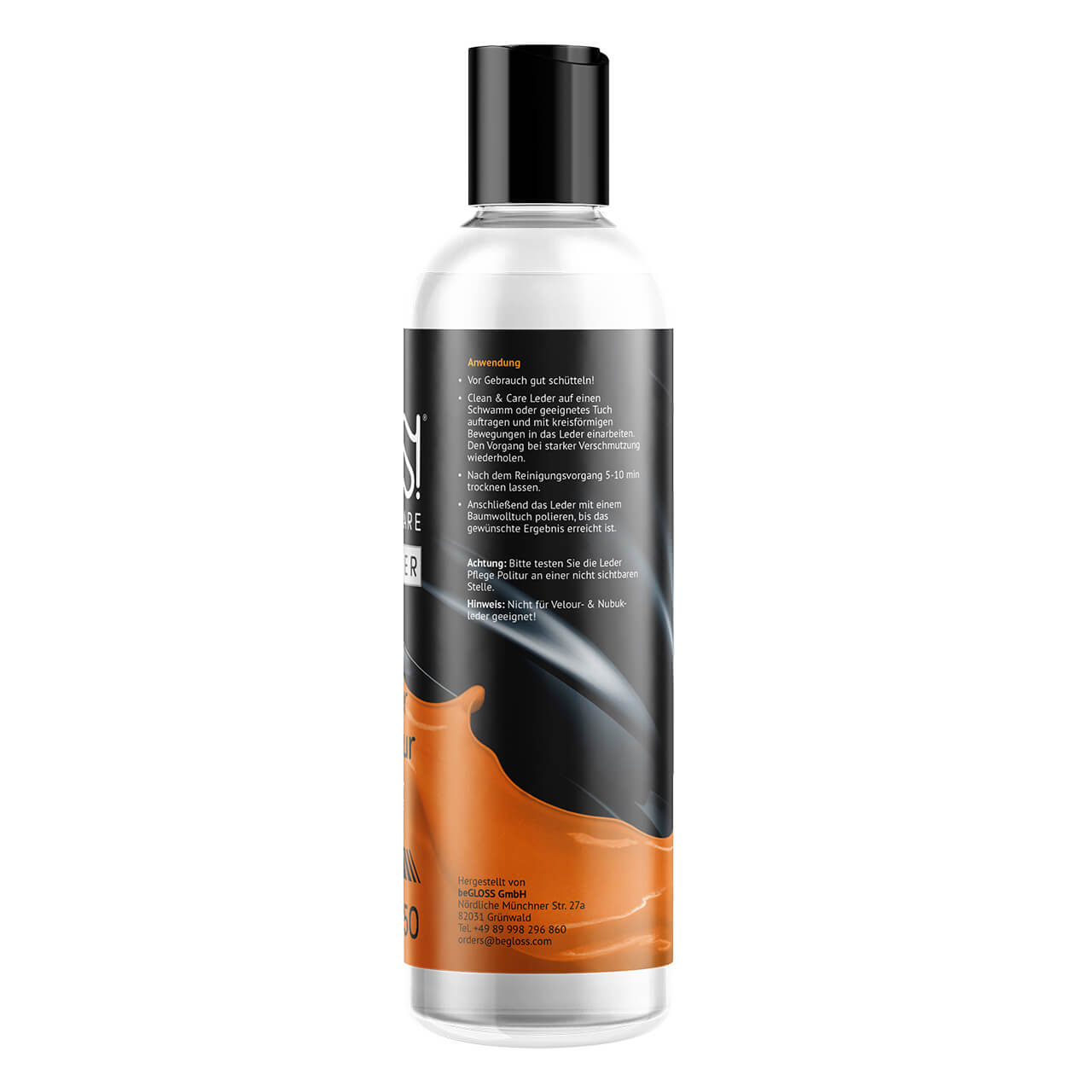 beGLOSS – Clean & Care – Leather Cleaner & Polish is de perfecte verzorging voor leren kleding schoenen en meubels.