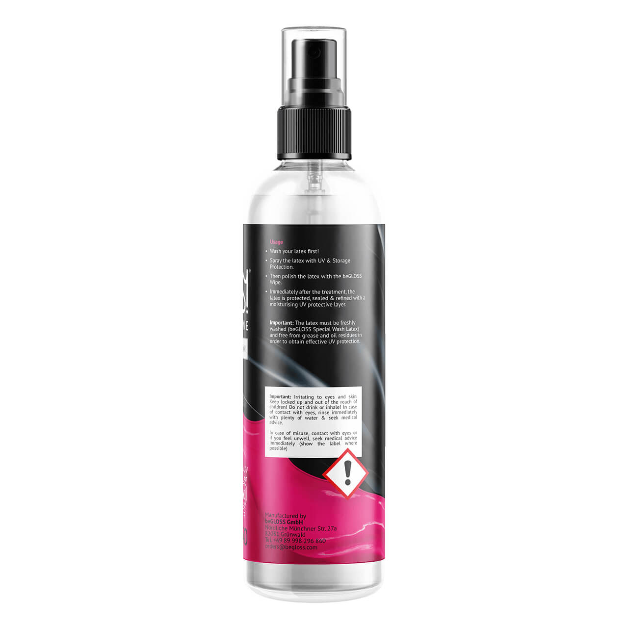 - Voor het beste resultaat moet het latex/datex kledingstuk eerst grondig gewassen zijn, bijvoorbeeld met beGLOSS Special Wash Latex (bij ons verkrijgbaar).