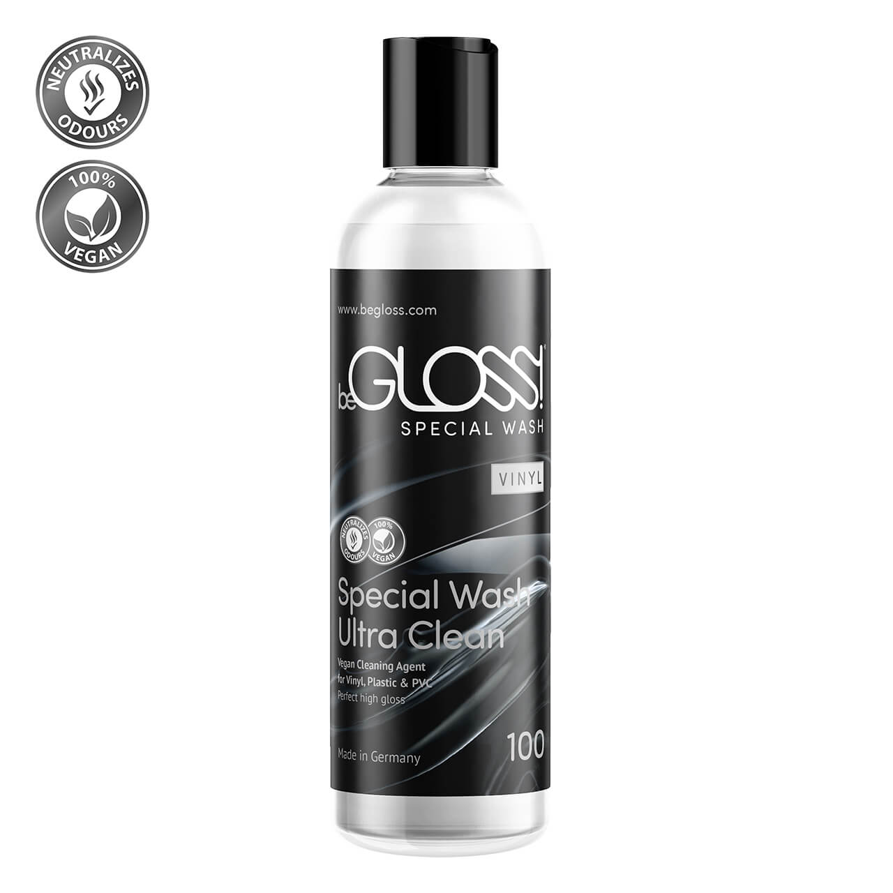 BeGLOSS – Special Wash Ultra Clean – Wasmiddel – Lak, Vinyl & PVC – 100 ml is het perfecte reinigingsmiddel voor kleding en accessoires gemaakt van lak, vinyl, PVC.