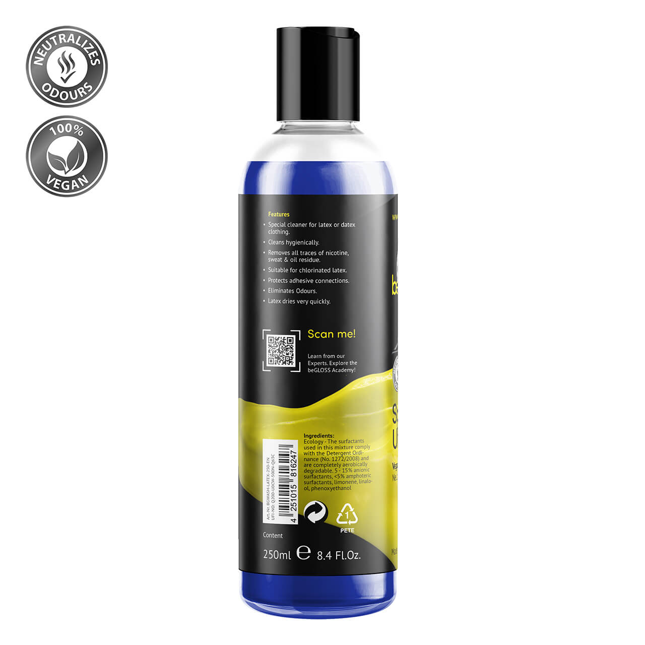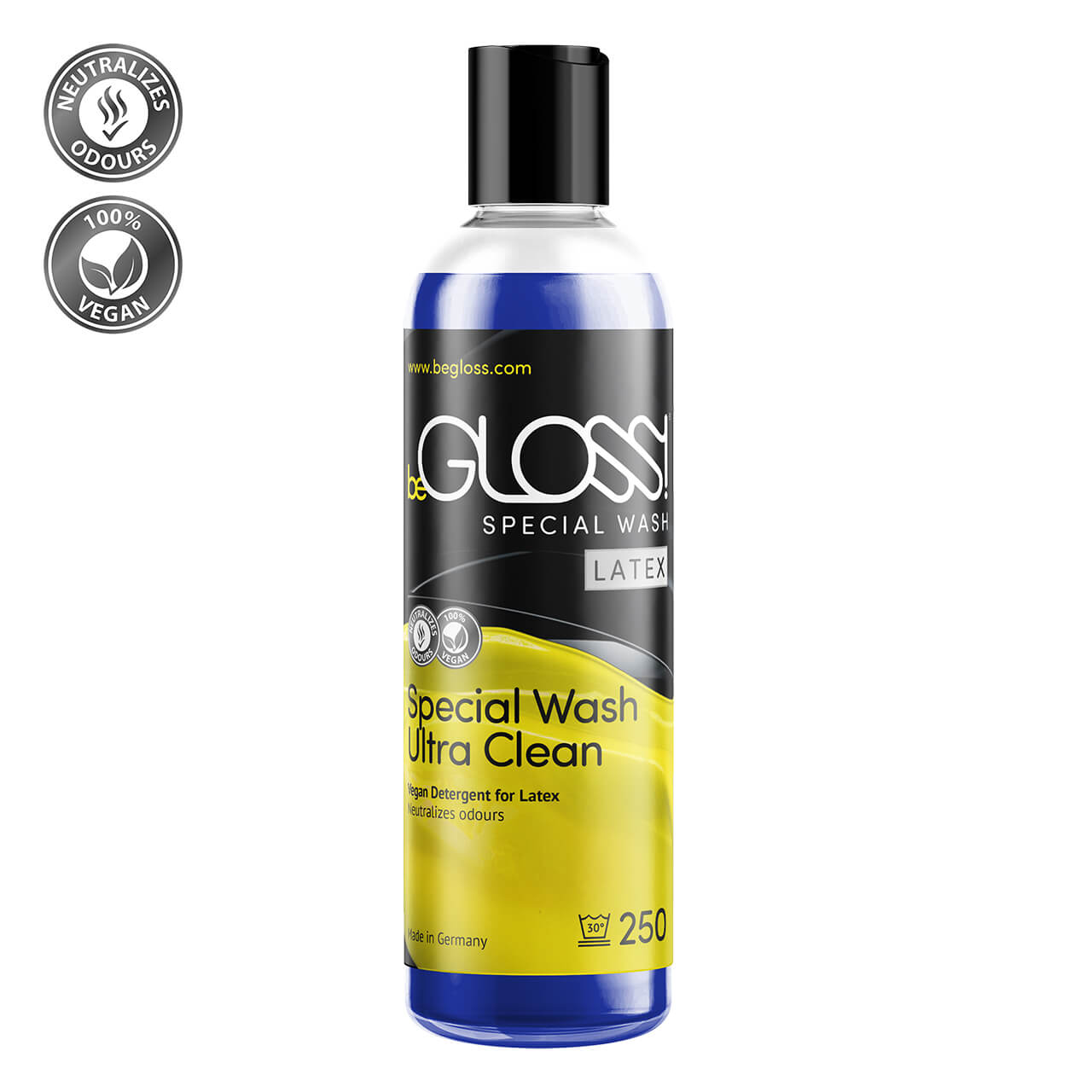 beGLOSS – Special Wash Ultra Clean Latex is een zachte reiniger voor de verzorging en intensieve zuivering van rubber- en latexkleding.