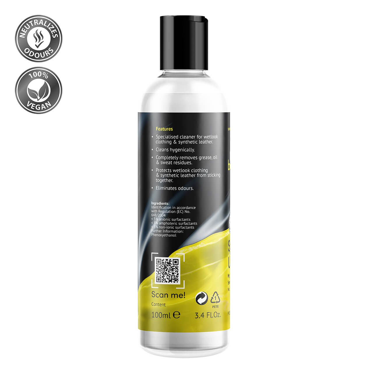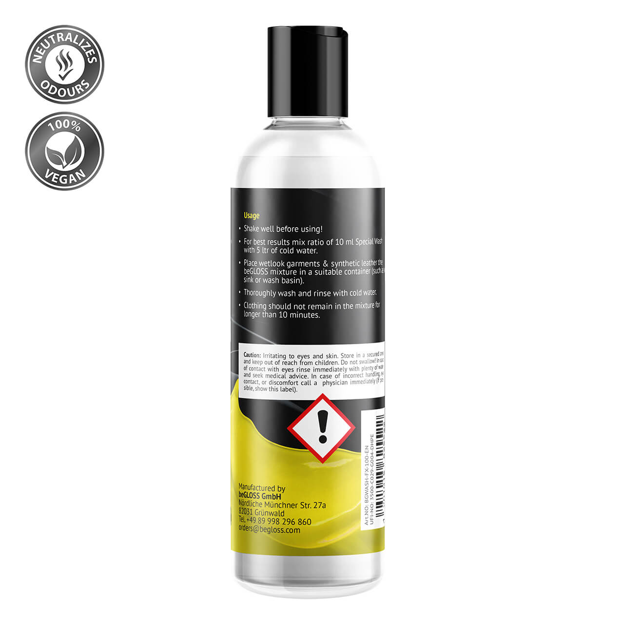 BeGLOSS – Special Wash Ultra Clean – Wasmiddel – PU-leer & Wetlook – 100 ml is de perfecte reiniger voor PU-leren kleding (imitatie leer), wetlook kleding en accessoires.