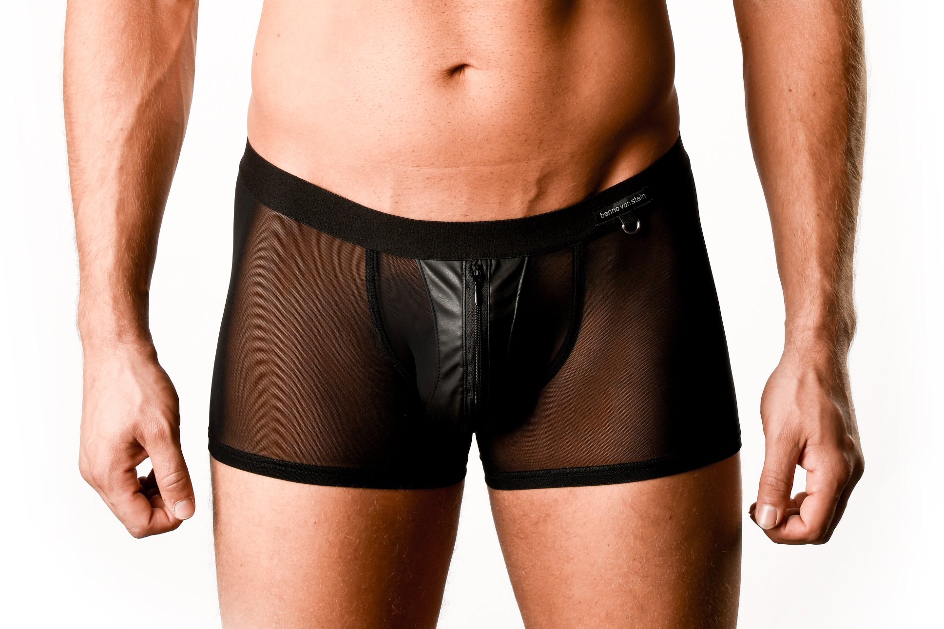 De Temoro Short van Benno Von Stein is gemaakt van gaas met een kunstleren pouch. In de pouch zit ook een rits. De band is elastisch. Deze short is niet alleen sexy, hij draagt ook nog eens heel comfortabel door de fijne stretch stof. Zit altijd als gegoten!
