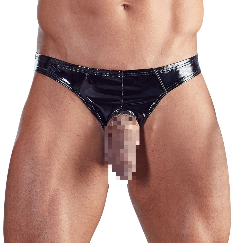 Laat niets aan de verbeelding over met deze super kinky lak slip voor mannen. De slip is voorzien van een strategisch geplaatste opening aan de voorkant, zodat je jouw mannelijkheid op uitdagende wijze kunt tonen. Perfect voor wie durft en houdt van spannende lingerie met een gewaagde uitstraling.