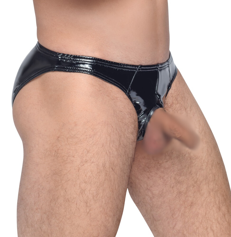 Kinky lak slip voor mannen met rekbare opening aan de voorkant