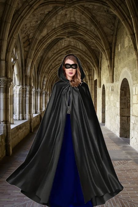 Dan is deze satijnen cape met masker van vilt een prima binnenkomer