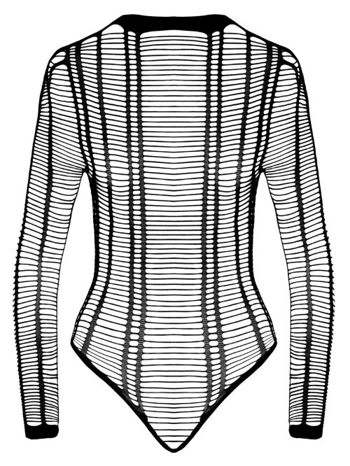 Sexy string body met open kruisje. De body heeft lange mouwen met een doorschijnend en opvallend streep motief.