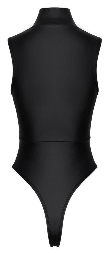 Strak, sexy en vol attitude – deze zwart matte stringbody met opstaande kraag en glinsterende strass-rits is een absolute showstopper. Het hoog uitgesneden design laat je benen eindeloos lijken en accentueert je billen op verleidelijke wijze.