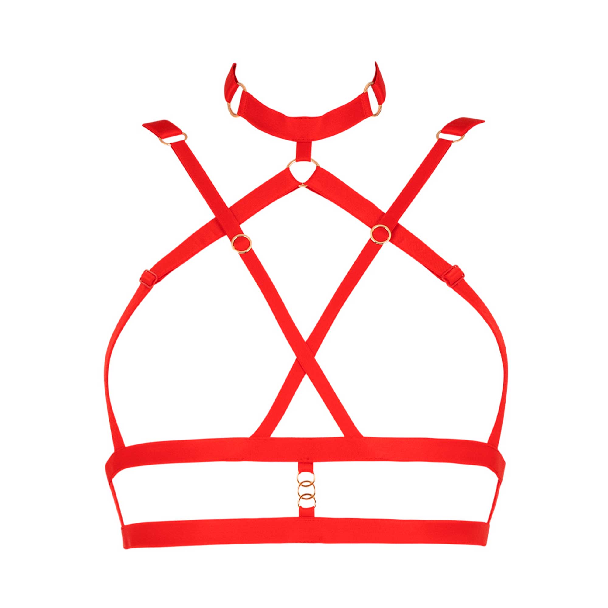 Een prachtig harnas top gemaakt van elastisch materiaal en verstelbare straps.