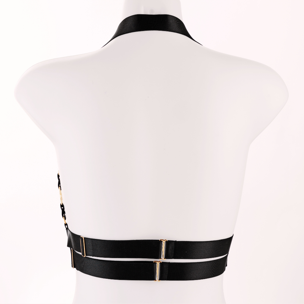 Verstelbaar Isis harnas, open cup-BH met parels & gouden details