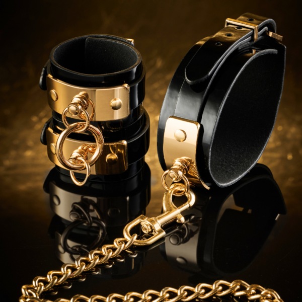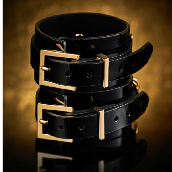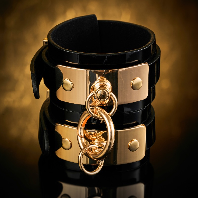 Prachtige enkelboeien set van zwart lak met goudkleurige accenten.