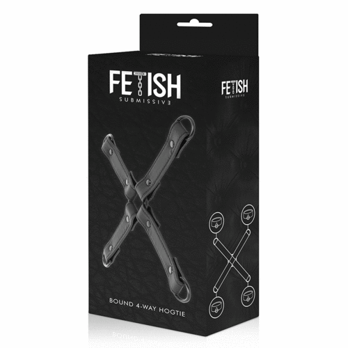 Combineer deze kunstleren Hog Tie met de bijpassende handboeien en enkelboeien zodat je een prachtige set hebt.