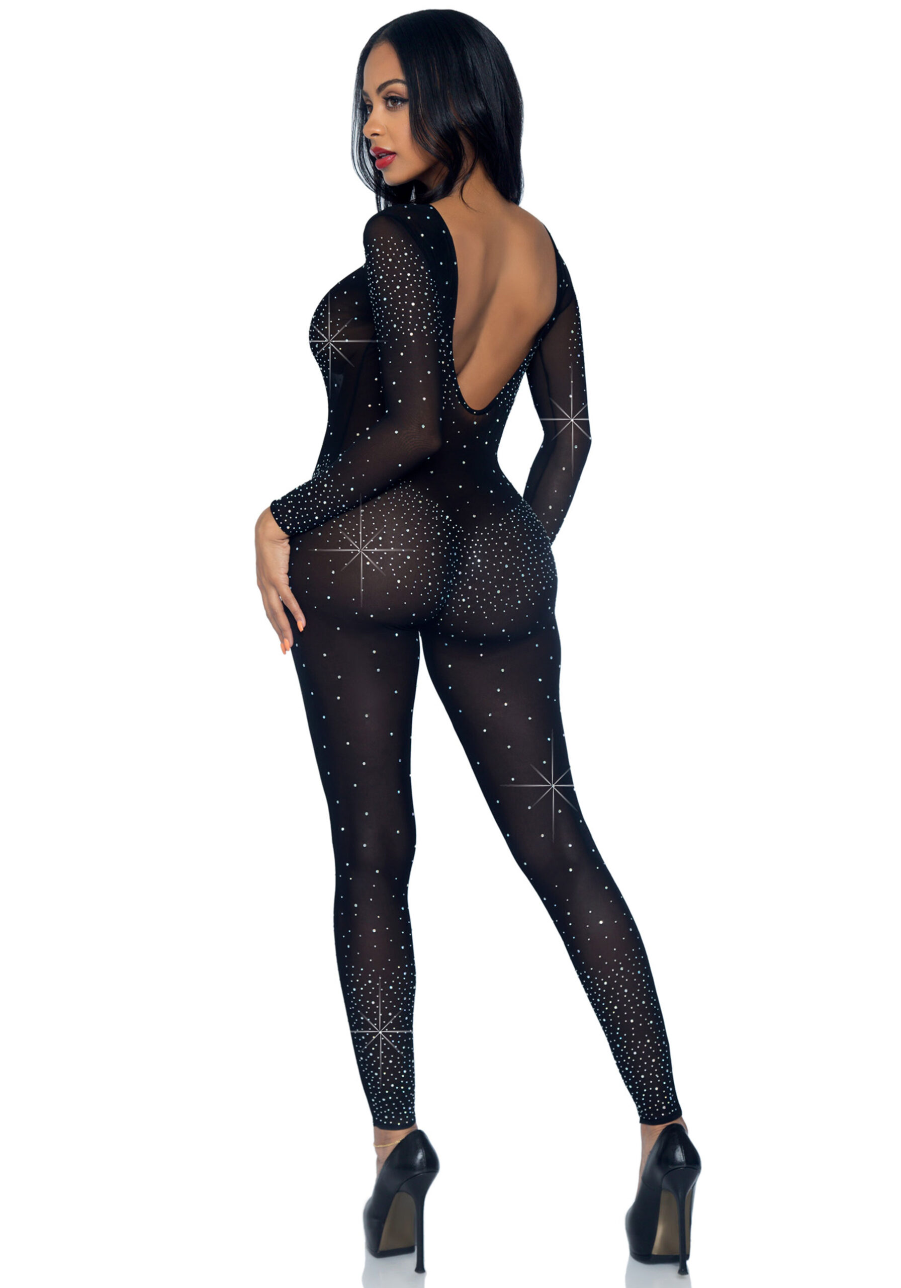 Je ziet er sprookjesachtig uit in deze verleidelijke catsuit bezaaid met glitterende strass steentjes. De gaas catsuit is iets doorschijnend en laat je silhouet perfect en mooi zien. Het is een perfect item voor verleidelijke momenten met je geliefde of om flirterige aandacht te trekken in een club of feest. Combineer deze catsuit met lingerie of draag hem zo op jouw naakte huid.