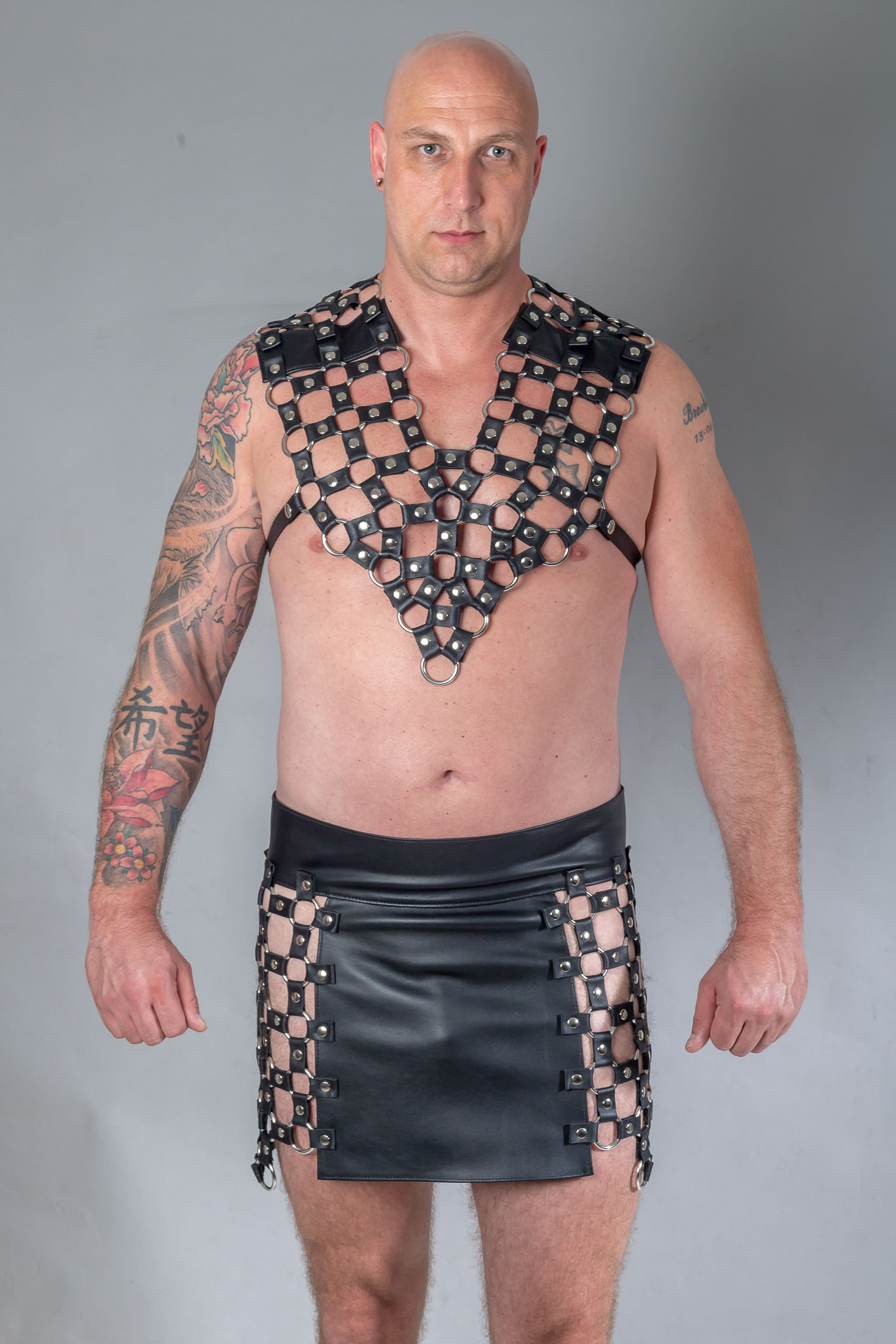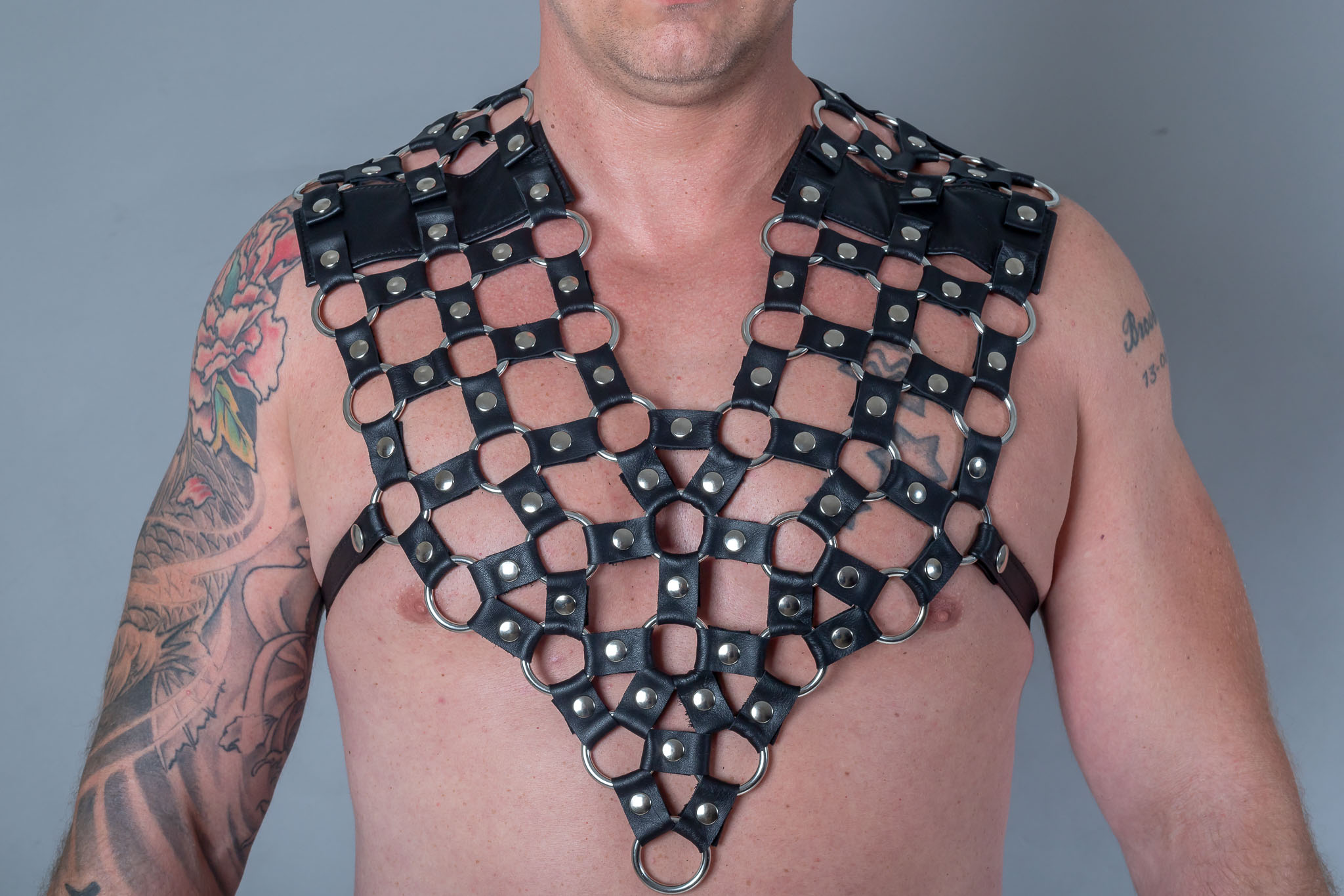 Stoer borstharnas die volledig gemaakt is van nikkel vrije ringen met leertjes. De voor- en de achterkant lopen in een punt. Aan de zijkanten zitten 2 riempjes waarmee je het op maat maakt voor jouw lichaam. Er zitten standaard 4 riempjes bij in 2 verschillende lengtes. Hierdoor is het harnas geschikt voor alle lichamen.