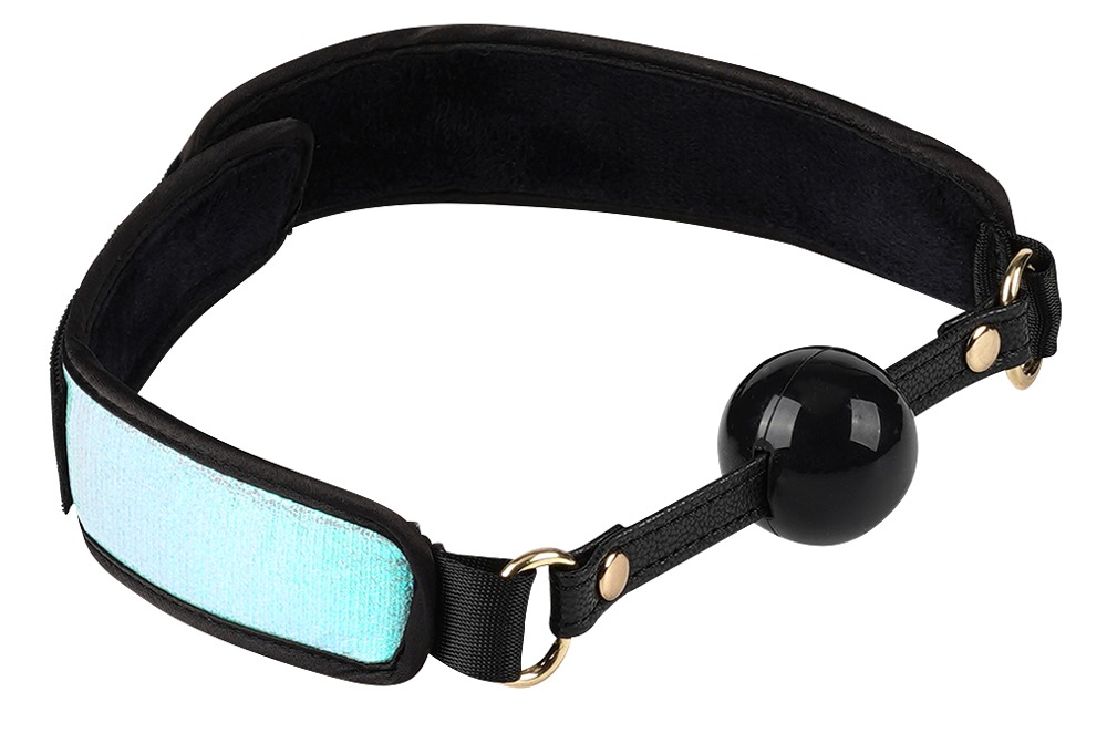 - 1 Ball gag: Ø 3,3 cm, hoofdband 4 cm breed, 52 cm lang (verstelbaar).
