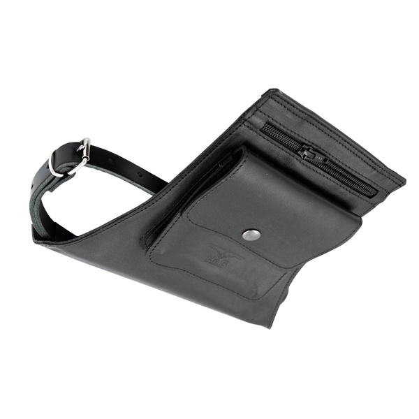Deze holster heeft twee afsluitbare zakken. Hoogwaardige ritsen aan de bovenkant van de opening van de achterzak en een donkere metalen drukknoop om het voorvak met klep vast te zetten, maken deze zijtas betrouwbaar en veilig voor je waardevolle spullen. Je telefoon, portemonnee, sleutels en feestartikelen kunnen veilig in deze tas blijven terwijl je rondslentert en wild wordt op je kinky evenement.