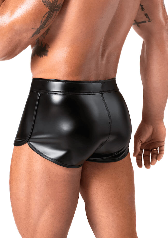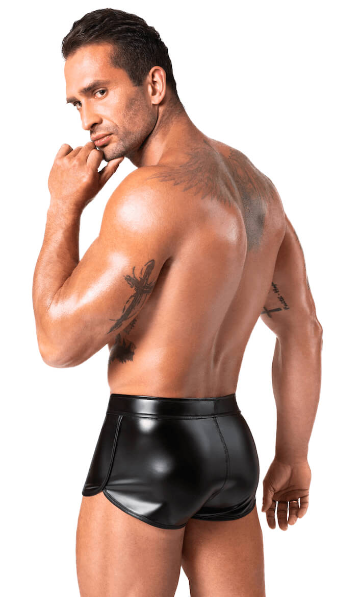 Houd je van strak en modern? Dan is dit de perfecte short, gemaakt van Power Wetlook. Het materiaal glimt en is elastisch. De zijkanten van dit broekje zijn iets opgesneden. Ook heeft deze short een vetertje aan de voorkant die samen met de elastische tailleband helpt de pasvorm aan te passen. Een heerlijk en sexy broekje om te dragen!
