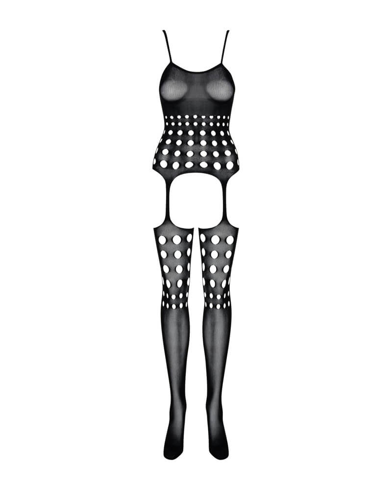 Deze sexy bodystocking is een combinatie van een top en kousen die via jarretelstraps met elkaar zijn verbonden. Hierdoor zijn de heupen vrij en heeft de body een open kruis,