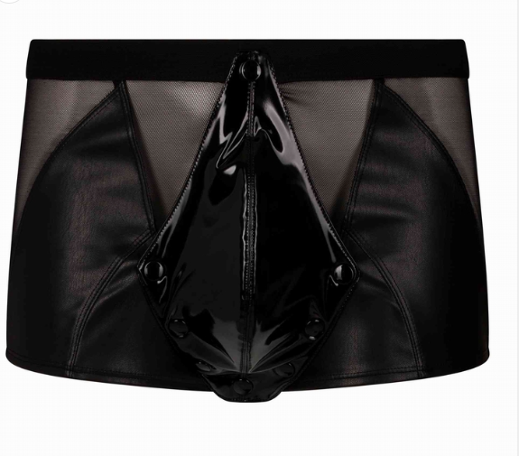 Het speelse element van de Harbard short is het ruitvormig stuk voor het kruis, dat is gemaakt van opvallend glanzend lak. Het kan eenvoudig worden losgemaakt met behulp van de drukknopen. Dit biedt je de mogelijkheid om jezelf geleidelijk te onthullen en je partner te verleiden.
