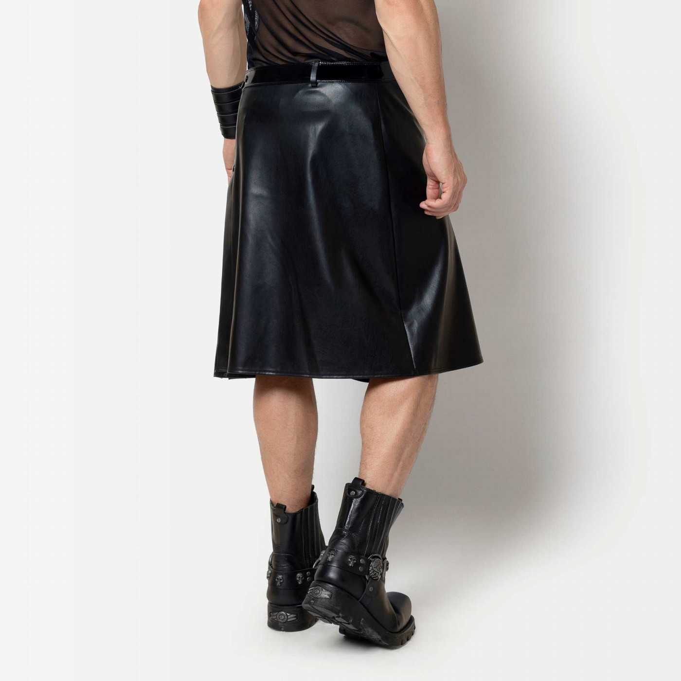 Als je als man regelmatig fetish feestjes bezoekt, dan zie je ook veel mannen rokken. Deze rok, of beter meer een schotse kilt, is een unieke rok van kunstleer en lak. Een halflange rok met een geplooid lakdeel aan de voorkant. Je kunt het lakgedeelte ook vervangen door een inzet van een schotse ruit. Hoe origineel is dit?! Het zit en draagt ook nog eens heel comfortabel.