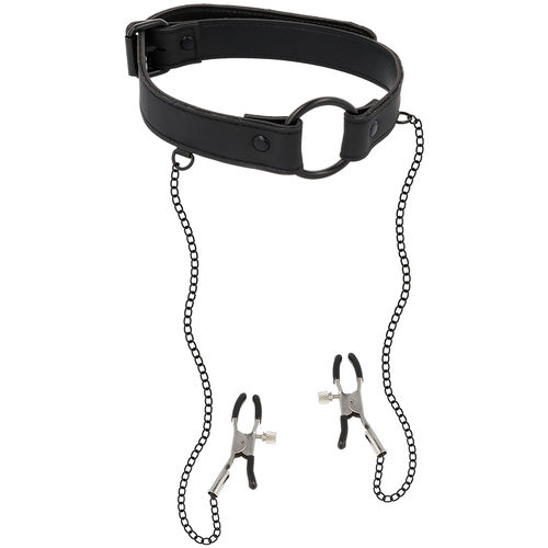 Verhoog het niveau van je fetisj-spellen en ontdek je dominante of onderdanige kant met deze ring gag met verstelbare tepelklemmen. Snoer je sub de mond!