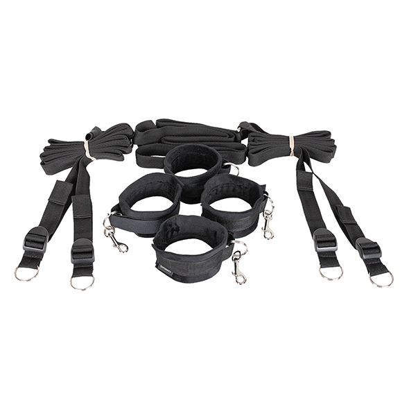 Inclusief vier pols-/enkelboeien, vier banden van 152 cm lang en een verbindingsband van 152 cm lang.