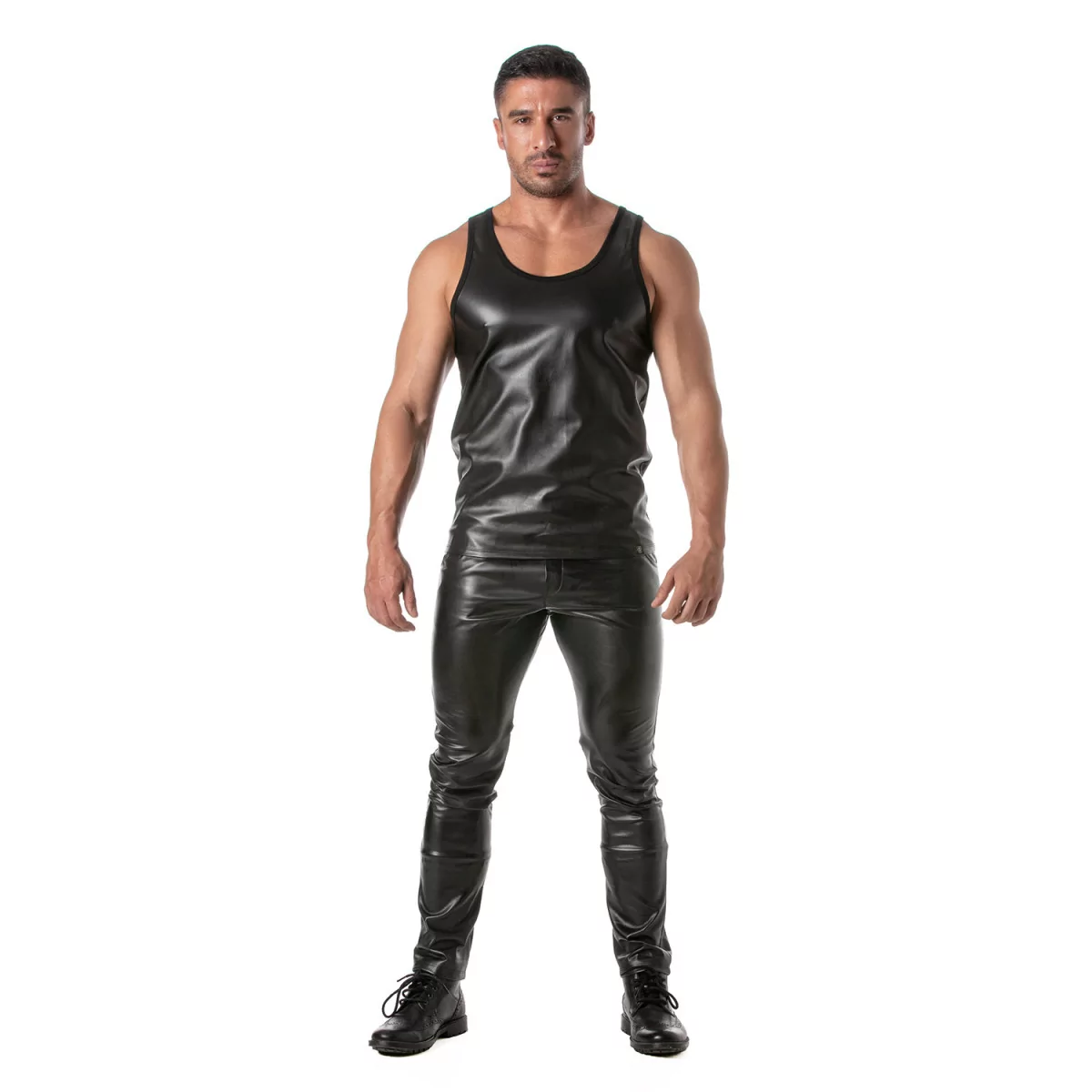 Perfecte kunstleren tank top voor alle fetish feestjes. Het staat stoer en zit ook nog eens heel erg comfortabel door het zachte kunstleer. Dit shirt is ook nog eens perfect te combineren met elke lange broek of short.