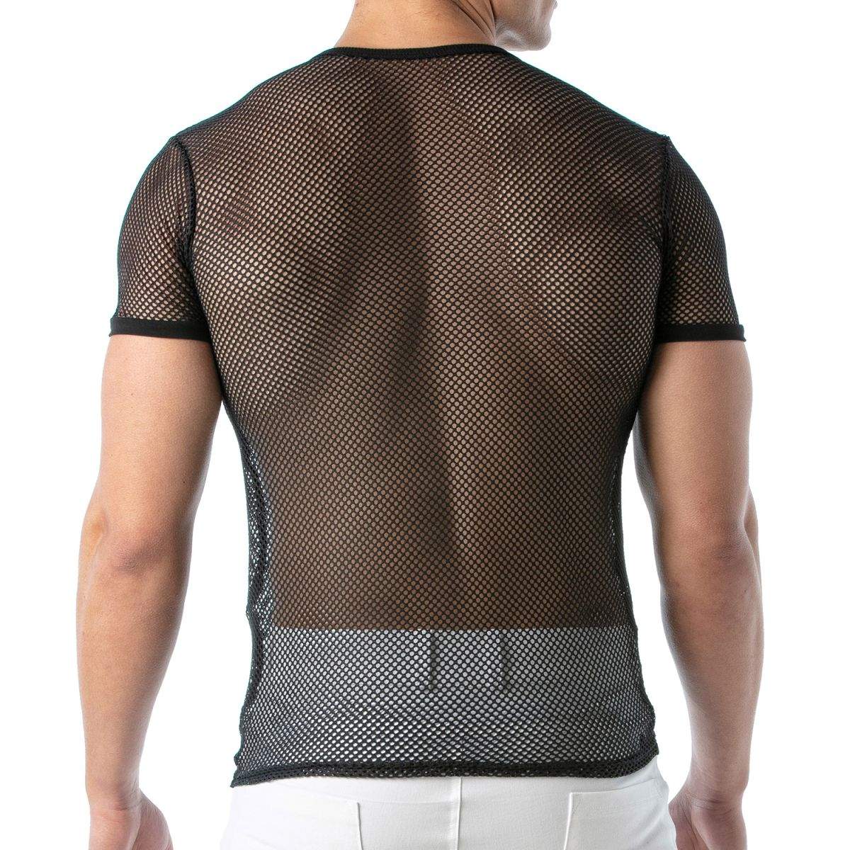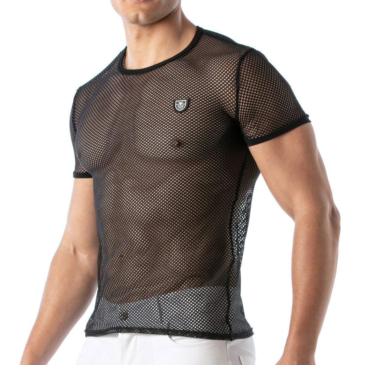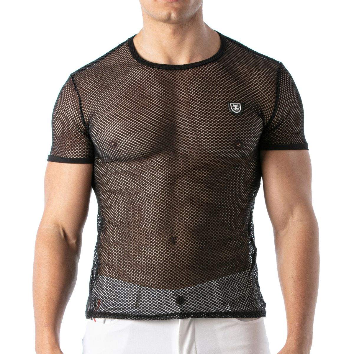 Prachtig zwart shirt in zwart visnet van het kwaliteitsmerk TOF Paris.