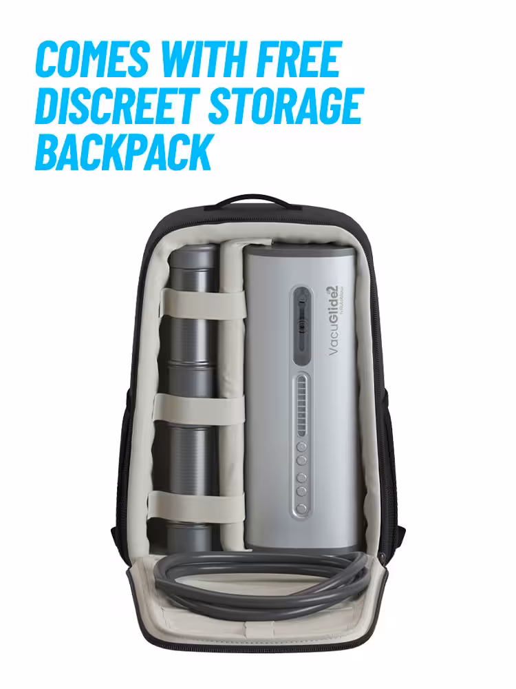 De VacuGlide 2 wordt geleverd met 3 cilinders en 3 siliconen sleeves in verschillende maten voor een perfecte pasvorm. De binnenkant is eenvoudig uitneembaar voor hygiënische reiniging.