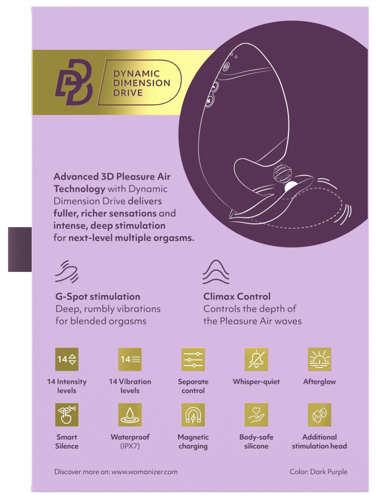 De Womanizer Next Duo is het ultieme speeltje voor vrouwen die méér willen: méér diepte, méér controle en méér orgasme. Dankzij de revolutionaire 3D Pleasure Air technologie en intense G-spot vibraties ervaar je blended orgasmes die je hele lichaam laten beven van genot.